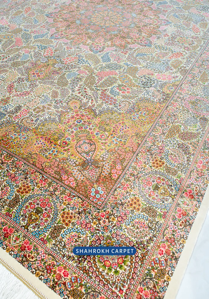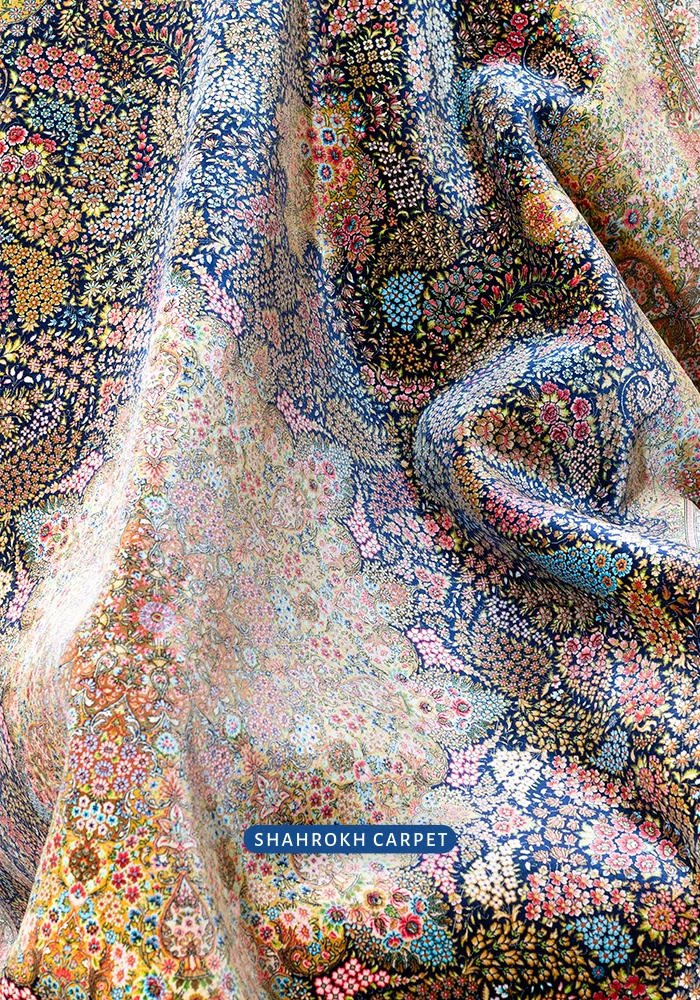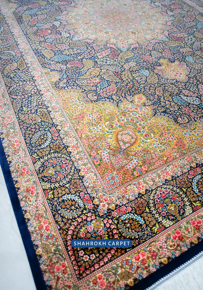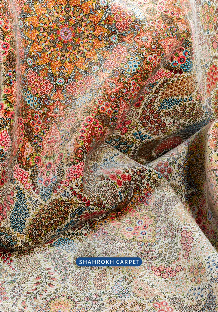 Experience the elegance of Persian heritage with our Q191 machine-made silk rugs, and crafted by Shahrokh Carpet Company.